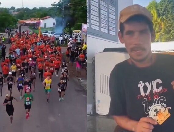 Salió del bar, vio una carrera de 8 km y se metió… ¡con chancletas y tragos encima! Ocurrió