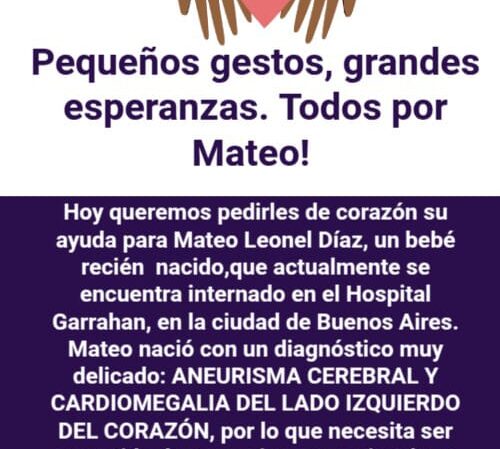 MATEO LEONEL DIAZ está luchando por su vida en el Hospital Garrahan. Es por ello que apelamos a su solidaridad.