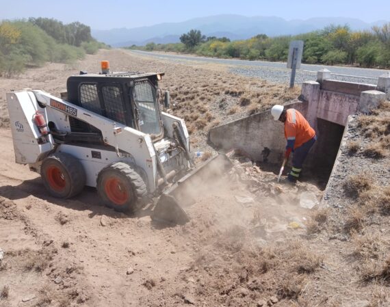 Vialidad Nacional ejecuta tareas de limpieza de alcantarillas y zona de camino en RN 60, entre Las Salinas