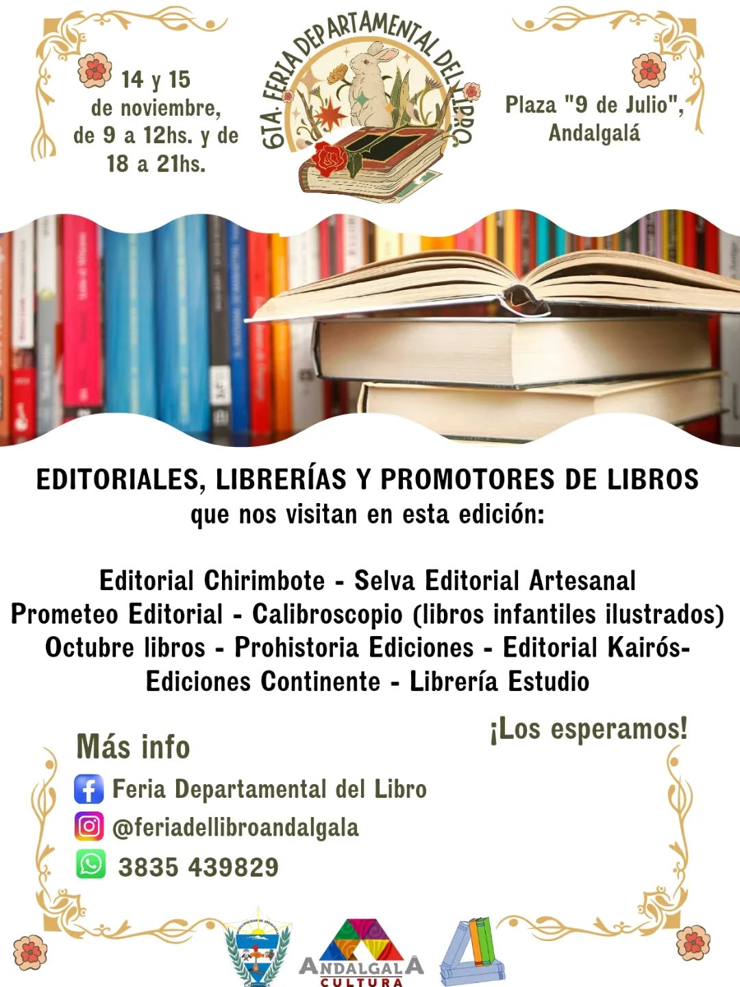 “Estaremos haciendo la apertura con la exposición y venta de libros de editoriales y librerías que van a venir de San Fernando del Valle de Catamarca, de Belén además de algunos que van a estar participando de Andalgalá, así que estamos muy contentos y expectantes de lo que va a pasar este viernes y sábado” indicó la profesora Cintia Ortega, organizadora del evento.