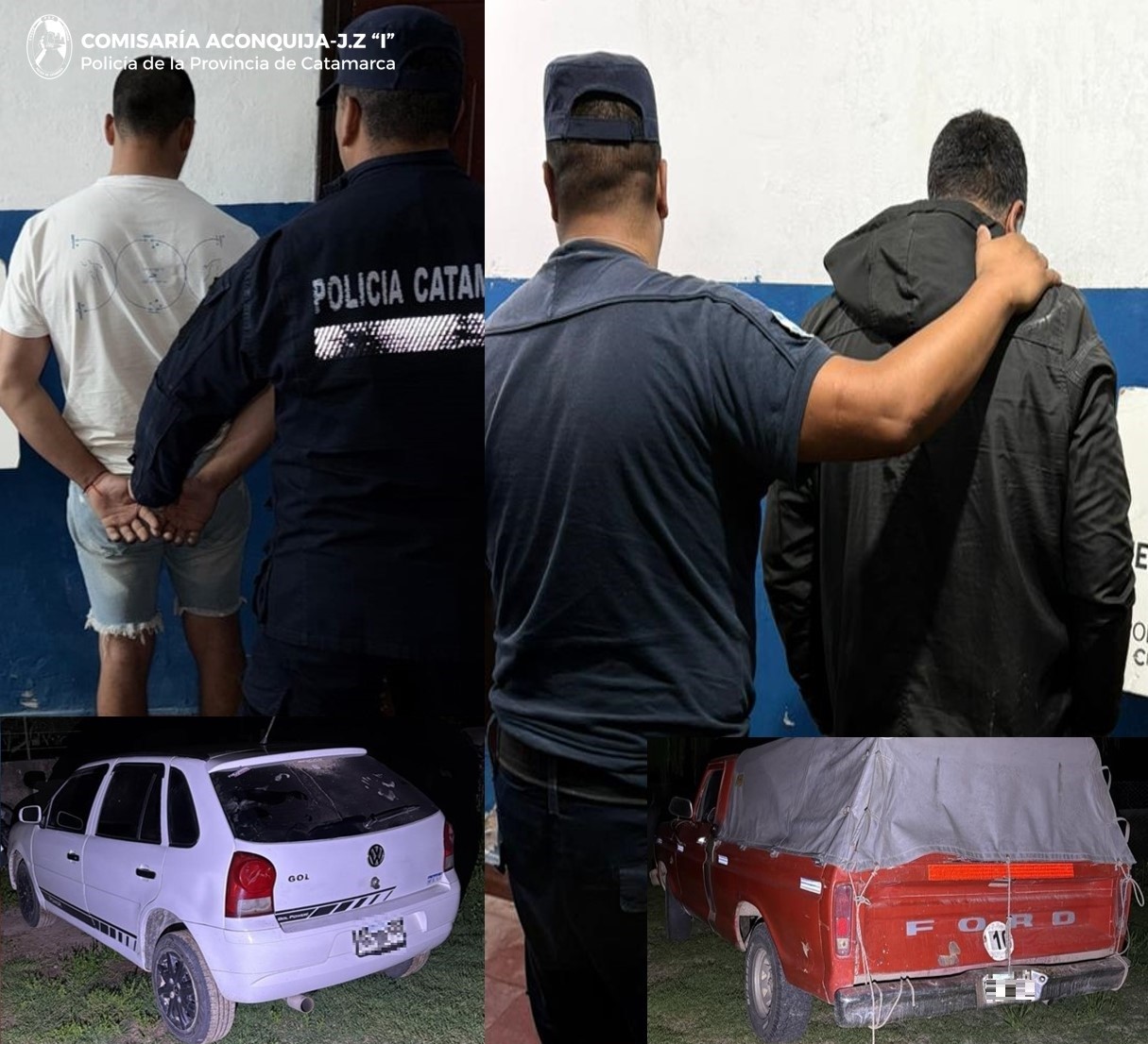 Mientras numerarios de la Comisaría de Aconquija realizaban recorridos preventivos por inmediaciones al paraje Pizavil del Dpto. Andalgalá, aprehendieron a dos sujetos de apellidos Olaz (26) y Maza (39), quienes habrían sido sorprendidos con un (01) animal porcino, que sería producto de un ilícito en el que resultó damnificado un hombre mayor de edad.