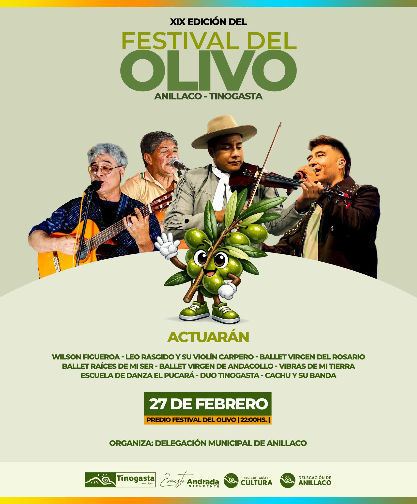 La delegación municipal de Anillaco, en el departamento Tinogasta, confirmó la realización de una nueva edición del Festival del Olivo, prevista para el próximo 27 de febrero.