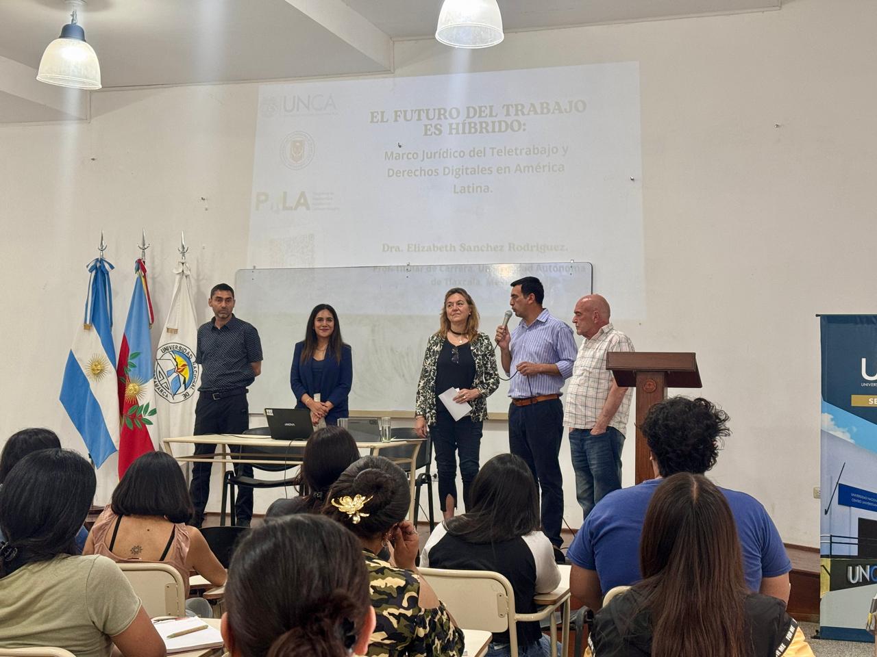 En ese marco, una de las docentes, Dra. Elizabeth Sánchez Rodríguez de la Universidad Autónoma de Tlaxcala– México explicó que como “Licenciada en Derecho, Master en Derecho del Trabajo y la Previsión Social, y doctora en Derecho Laboral, lleva adelante distintas actividades académicas y charlas referidas al trabajo híbrido y derechos digitales en América Latina”. Por otro lado, opinó con respecto al reclamo de las universidades argentinas en defensa de la Ley de Financiamiento Universitario, y destacó que el mensaje que envió el Rector durante la marcha, “fue muy importante. Queda claro que esta universidad está a la vanguardia y están preocupados por el presente y el futuro de sus estudiantes y esto genera la grandeza”.