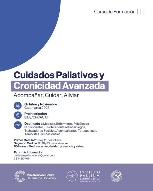Invitamos a profesionales y estudiantes de la salud a participar del curso de Formación en Cuidados Paliativos, con el objetivo de brindar herramientas para acompañar de manera integral a pacientes con enfermedades crónicas o termin#AcompañamientoIntegral