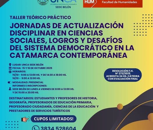 TALLER TEÓRICO PRÁCTICO – «JORNADAS DE ACTUALIZACIÓN DISCIPLINAR EN CIENCIAS SOCIALES, LOGROS Y DESAFÍOS DEL SISTEMA DEMOCRÁTICO EN LA CATAMARCA CONTEMPORÁNEA»