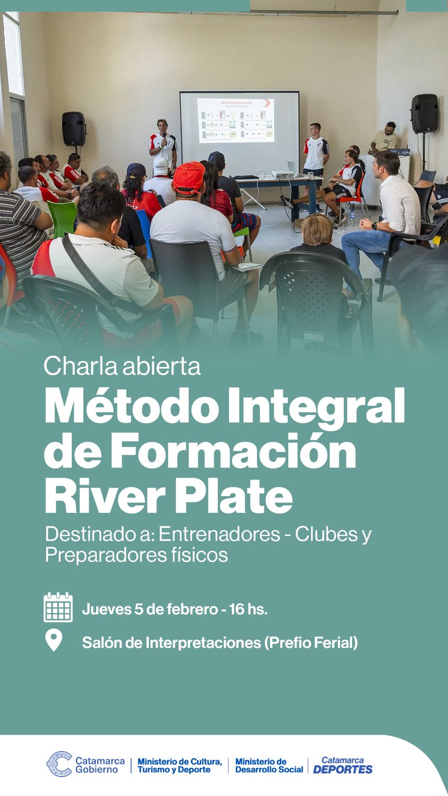 El equipo de profesionales del Club Atlético River Plate que está realizando la pretemporada de fútbol formativo, en las categorías Quinta y Séptima División en Catamarca brindará una charla abierta este jueves 5 de febrero a las 16 hs en el Salón de Interpretaciones del Predio Ferial. En la misma, se compartirá la metodología integral de formación y la dinámica de trabajo interdisciplinaria que sostiene el desarrollo de futbolistas desde divisiones formativas hasta el alto rendimiento.