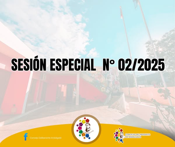 El Concejo Deliberante de Andalgalá informa a la comunidad que el día 10 de diciembre de 2025, a las 18:30 horas, se llevará a cabo la Sesión Especial N.º 2/25, convocada con motivo del cambio de autoridades del cuerpo legislativo.