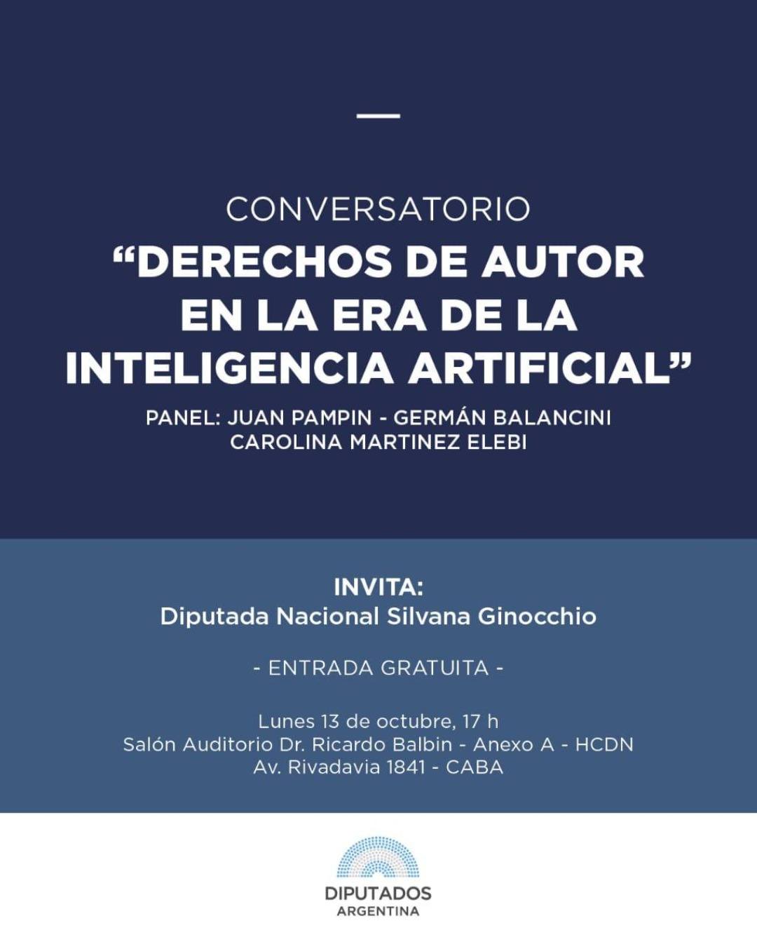 La Diputada Nacional Silvana Ginocchio invita a participar de este encuentro clave para reflexionar sobre los desafíos y oportunidades que plantea la inteligencia artificial en materia de propiedad intelectual y derechos de autor.