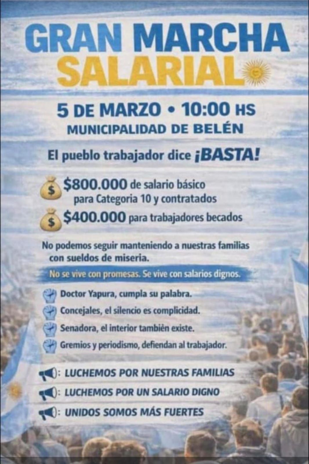 La ciudad de Belén vivirá este jueves una jornada de alta intensidad política y social. Mientras el Concejo Deliberante se prepara para la apertura del Periodo de Sesiones Ordinarias 2026, un nutrido grupo de empleados municipales autoconvocados planea ganar las calles para visibilizar un duro reclamo salarial que amenaza con empañar el acto institucional.