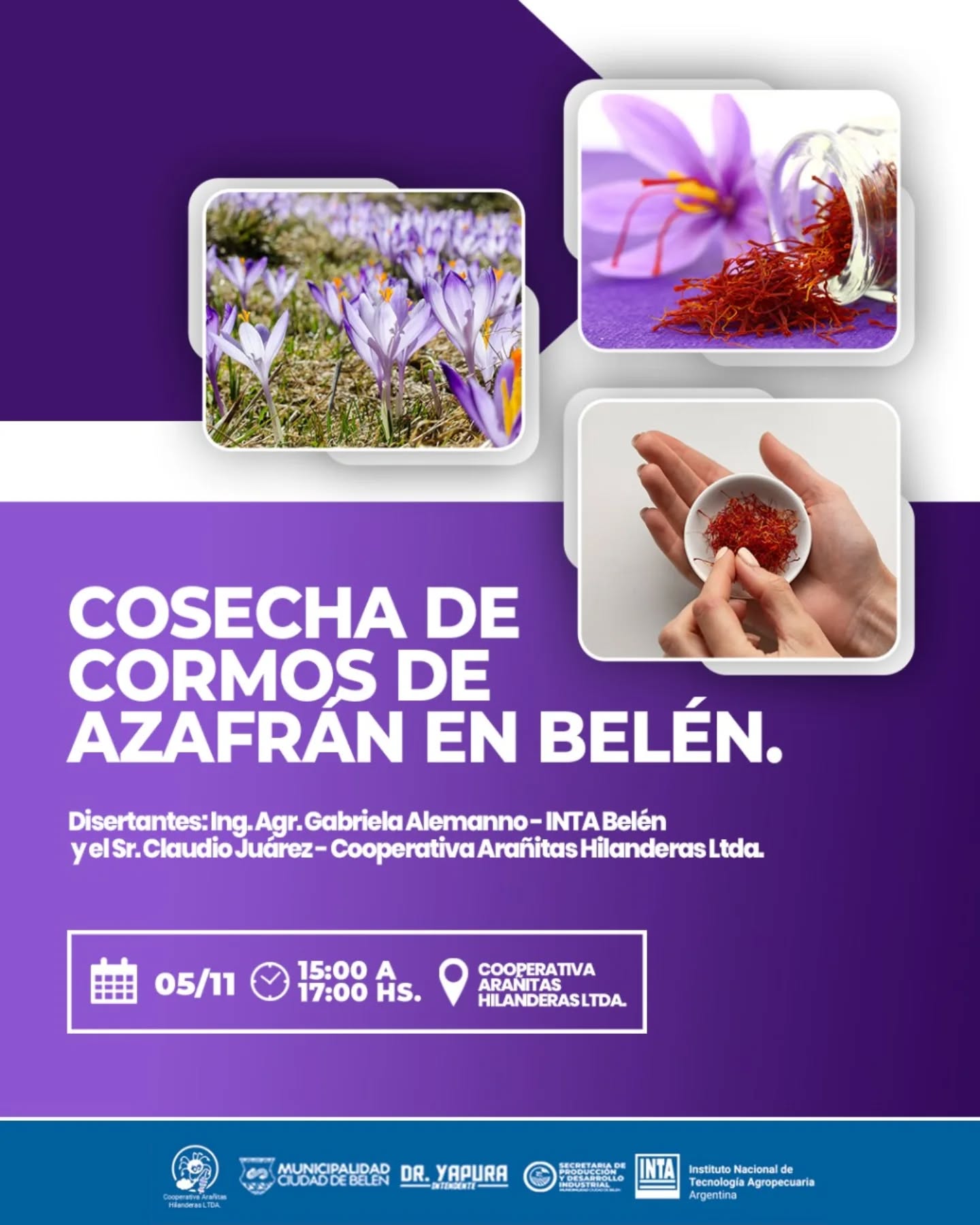 La Municipalidad de la Ciudad de Belén invita a participar de la jornada sobre Cosecha, Almacenamiento y Acondicionamiento de Cormos de Azafrán, una propuesta destinada a productores y público interesado en fortalecer sus conocimientos sobre esta valiosa producción local.