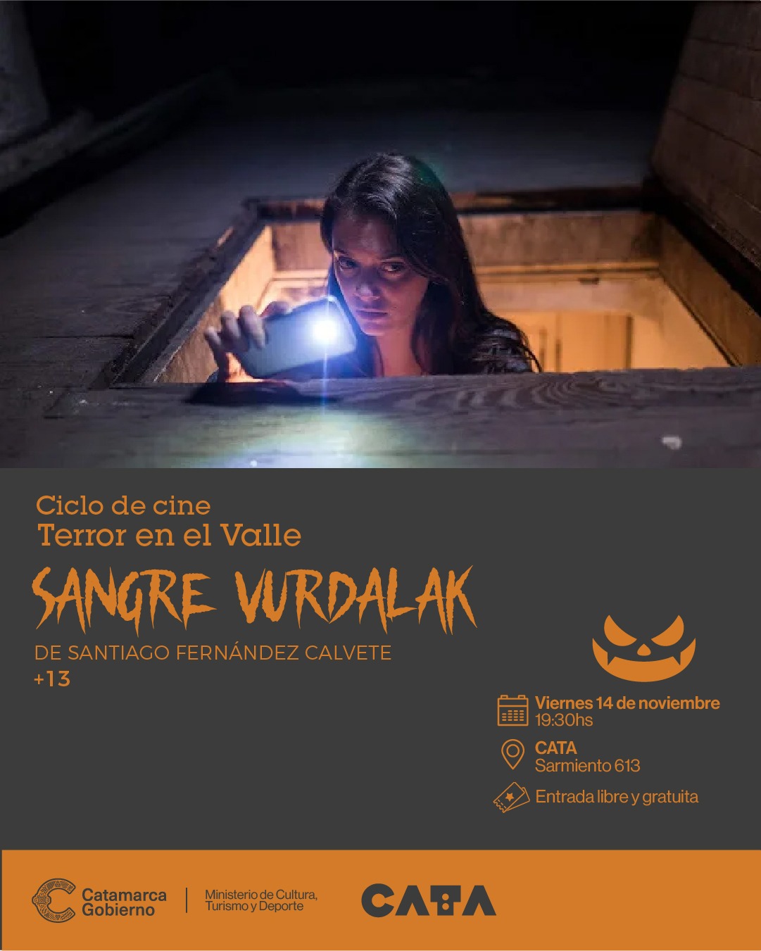 El ciclo de cine “Terror en el Valle” que tuvo su debut a fines de octubre, tendrá un nuevo encuentro este viernes 14 de noviembre en el Centro de Arte y Tecnología Aplicada – CATA (Sarmiento 613) con la proyección de la película argentina “Sangre Vurdalak”, de Santiago Fernández Calvete.
