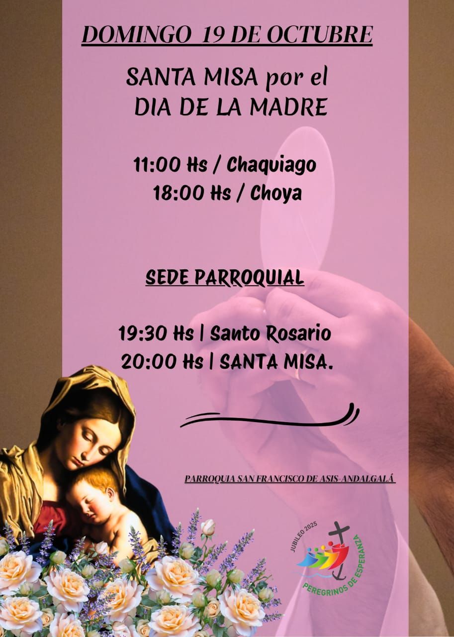 – 18.00 hs Misa en Capilla Virgen del Valle, Choya.