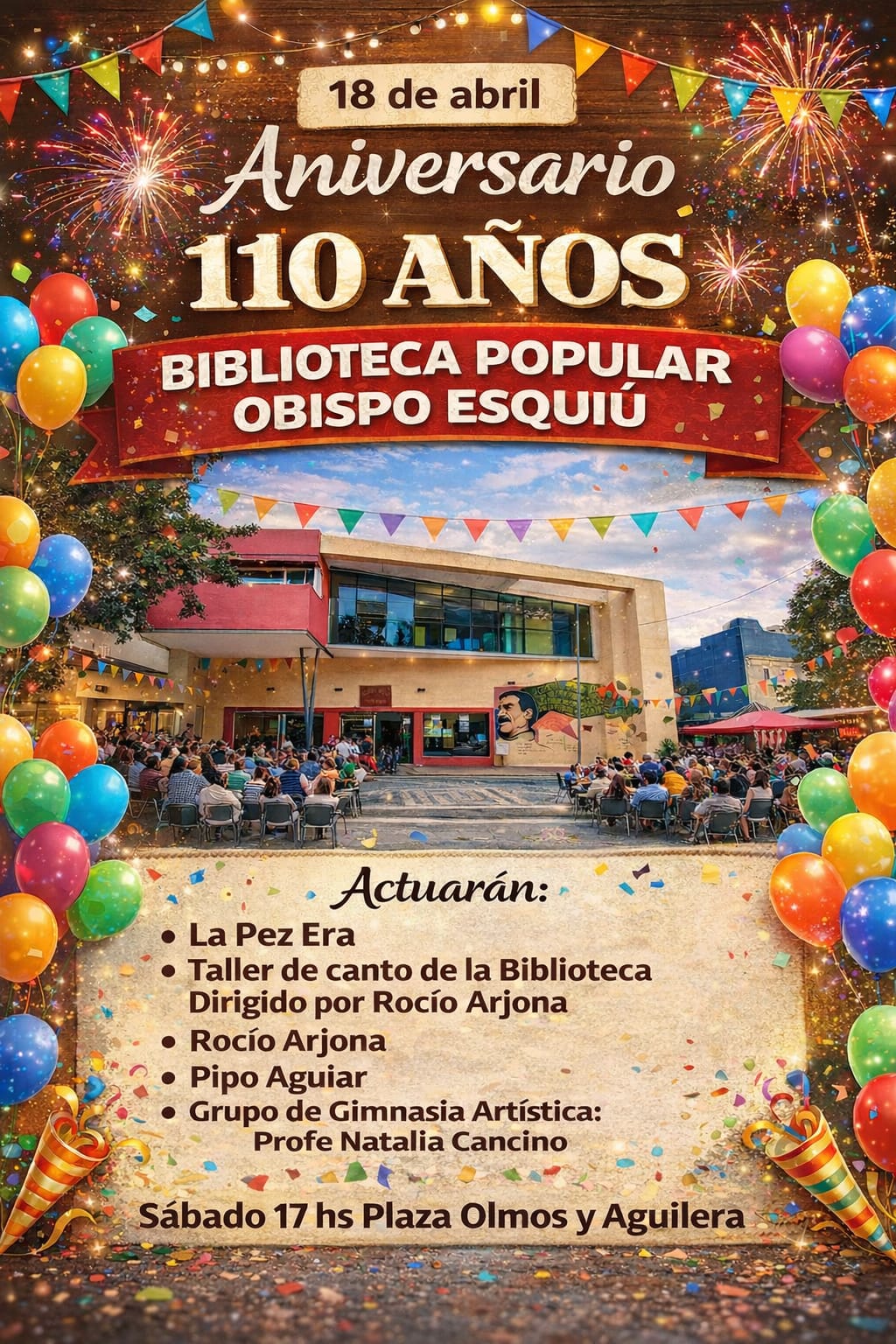 Las actividades centrales tendrán lugar este sábado, a partir de las 17:00 horas, en la Plaza Olmos y Aguilera, donde el arte y la comunidad se darán la mano. El escenario se llenará de ritmo y melodías con las presentaciones en vivo de La Pez Era, Rocío Arjona y Pipo Aguiar. Además, la institución mostrará su faceta formativa a través del Taller de Canto de la Biblioteca, bajo la dirección de la propia Rocío Arjona, y una exhibición de destreza a cargo del Grupo de Gimnasia Artística que coordina la profesora Natalia Cancino. Esta convocatoria no es solo un festejo, sino una invitación de la «Obispo Esquiú» a reencontrarnos con los libros, reafirmando que la lectura es el motor de una sociedad más libre y reflexiva.