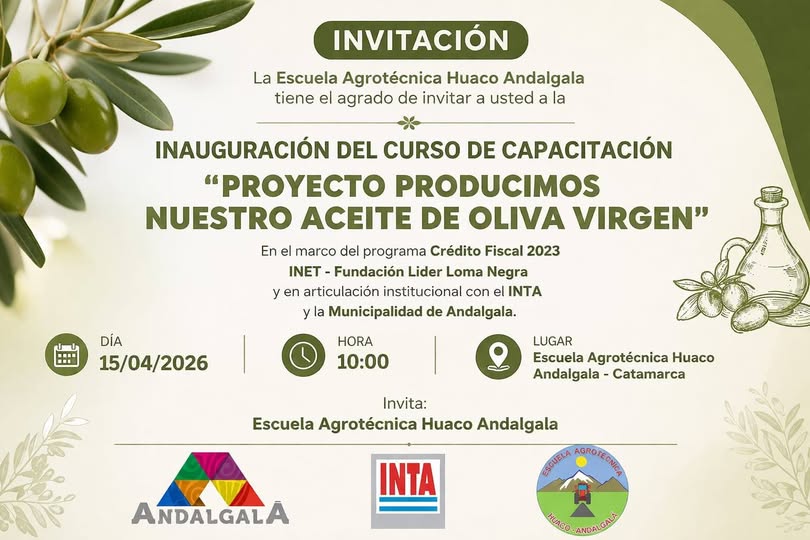 En un importante paso para la educación técnica y el desarrollo productivo local, la Escuela Agrotécnica de Huaco anunció el inicio del curso de capacitación vinculado al proyecto institucional «Producimos Nuestro Aceite de Oliva». Esta iniciativa, que busca potenciar el conocimiento sobre el cultivo y procesamiento del olivo, fue aprobada por el INET bajo el Programa de Crédito Fiscal 2023 y cuenta con el sólido patrocinio de la Fundación Loma Negra.