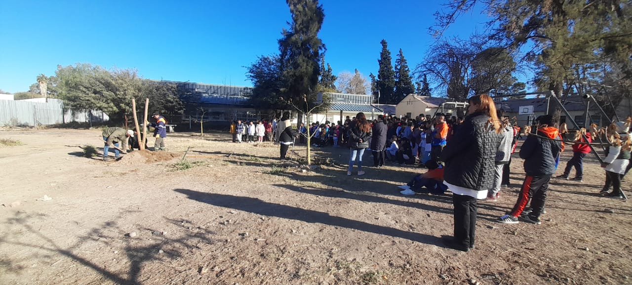 La ceremonia contó con la presencia de todo el alumnado, docentes, personal de servicio y la colaboración del equipo de la Delegación de Malli, quienes contribuyeron con el traslado y colocación del árbol. En este marco, se hizo un especial reconocimiento a la Delegada Mariana Santillán, por su constante predisposición y apoyo a las necesidades de la institución.