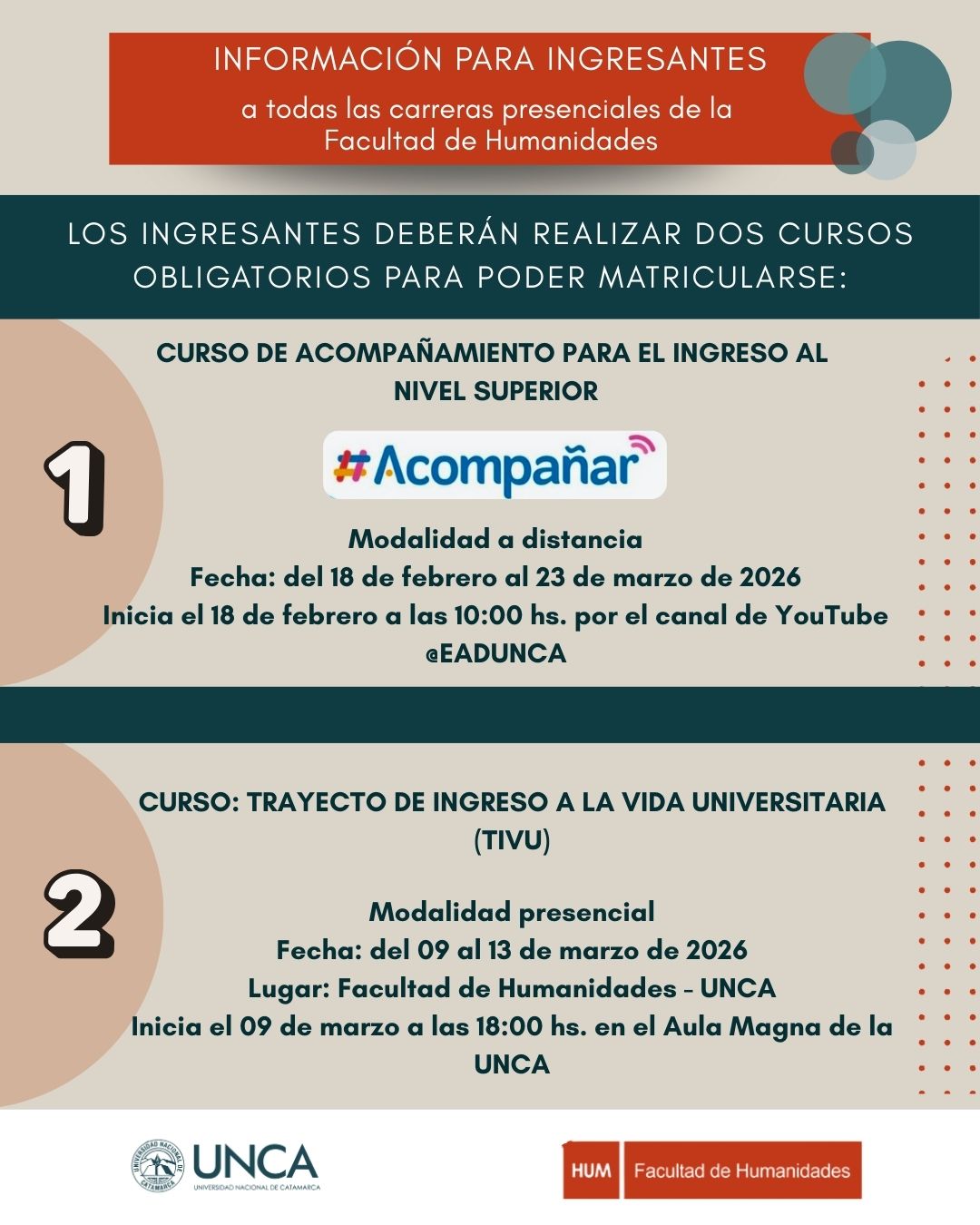 La Facultad de Humanidades de la UNCA informa a la comunidad que se dispuso una prórroga para el período de preinscripción a las carreras de grado correspondientes al ciclo lectivo 2026. El nuevo plazo se extiende hasta el viernes 27 de febrero inclusive, con el propósito de ampliar las oportunidades de acceso y acompañar a quienes deseen iniciar, continuar o reorientar su formación universitaria en el ámbito de esta unidad académica.