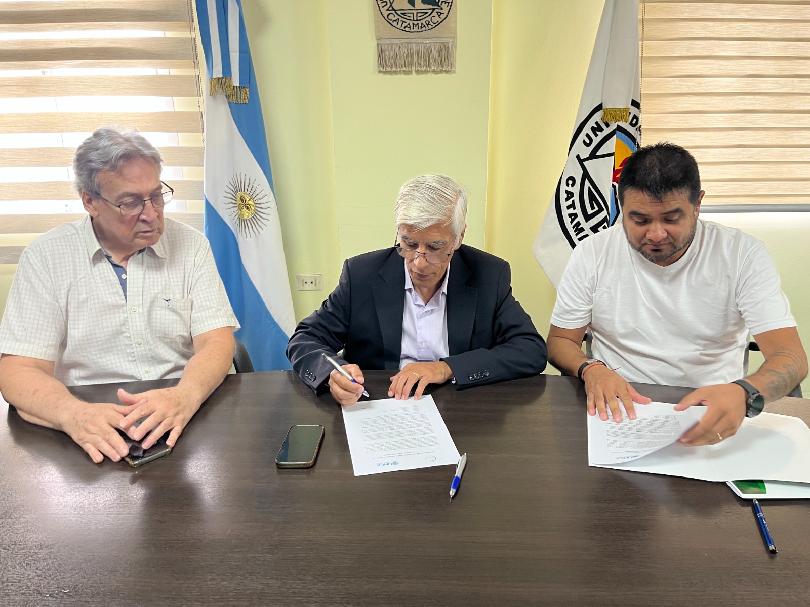 El acto contó fue presidido por el rector de la UNCA, ing. Oscar Arellano junto al decano de la Facultad de Ciencias Agrarias, ing. Eduardo de la Orden; y la secretaria de Relaciones Interinstitucionales e Internacionales, dra. Viviana Quiroga, junto a representantes del sector productivo y de la empresa firmante.