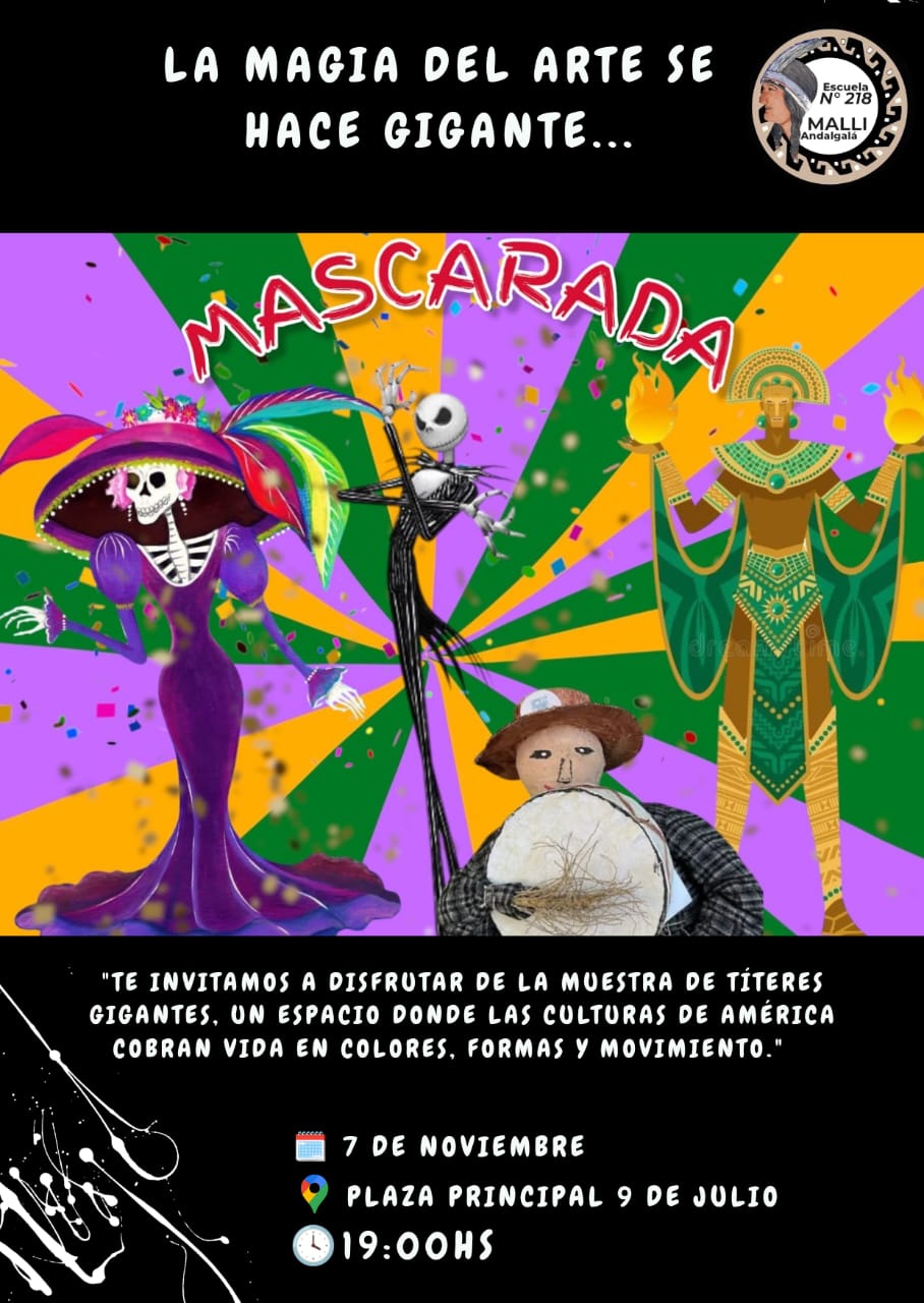 La Escuela N° 218 Provincia de San Juan, del distrito Malli presentara este viernes a partir de las 19:00 horas en la Plaza 9 de julio, el proyecto Mascarada.