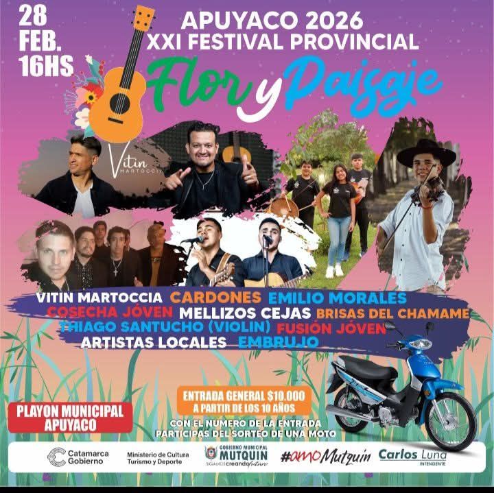 El próximo sábado 28, el Playón Municipal de Apuyaco se convertirá en el escenario de la XXI edición del Festival Provincial “Flor y Paisaje”, un evento que año tras año busca ratificar el vínculo de la comunidad con sus raíces y tradiciones.