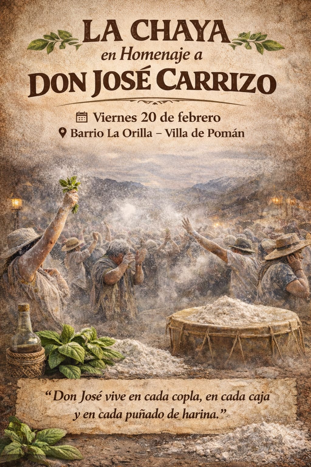 La Villa de Pomán se prepara para una jornada de profunda significación cultural. Organizada por sus familiares, la «Tradicional Chaya de Don José» dará inicio a las 18 horas en la calle Mendoza del barrio La Orilla. Con entrada libre y gratuita, el evento se perfila como un acto de estricta justicia histórica para Don José Bonifacio Carrizo, un hombre que fue mucho más que un animador del carnaval: fue el custodio de una mística milenaria.