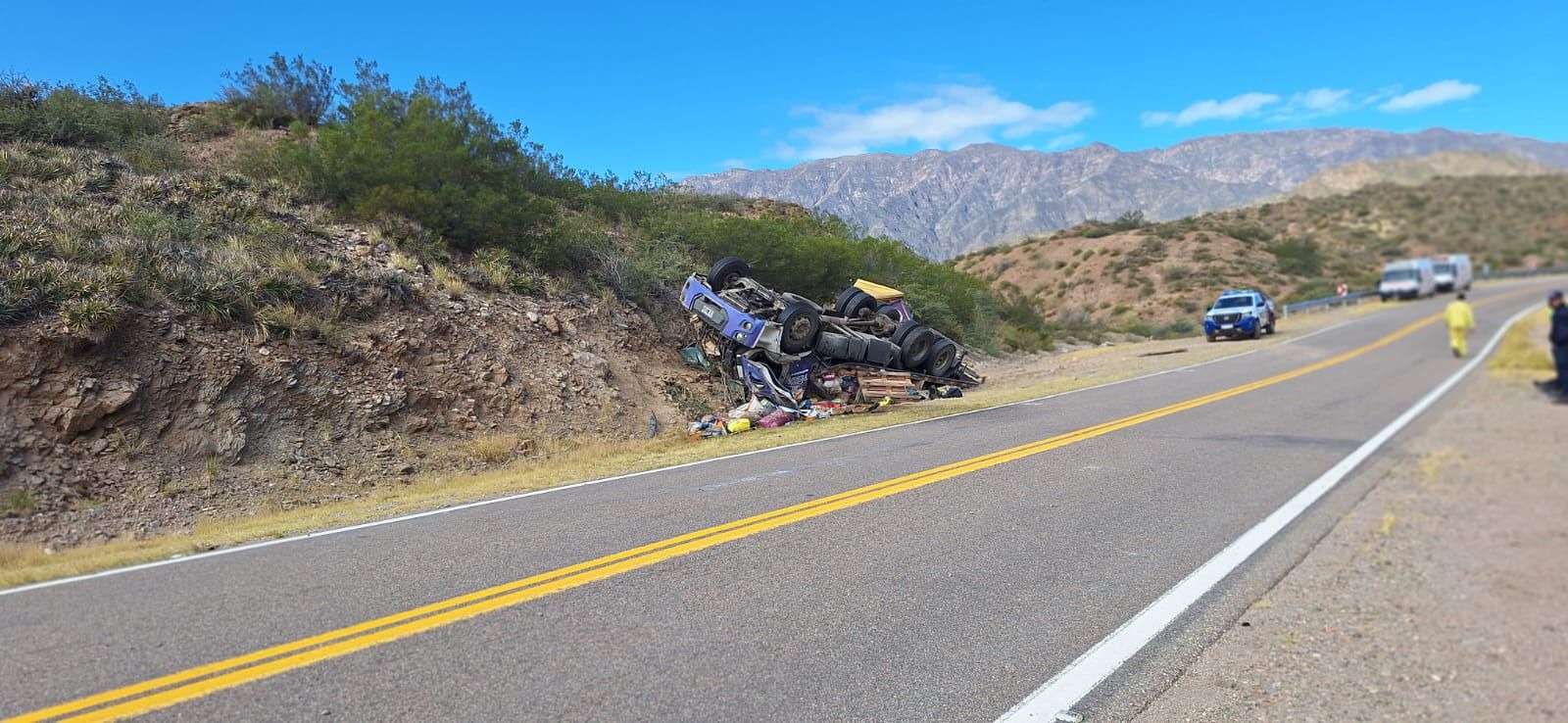Catamarca, 21/04/2026. Vialidad Nacional informa que, por el vuelco de un camión, se debe transitar con suma precaución por Ruta Nacional 60, en La Cebila, a la altura del kilómetro 1.159.
