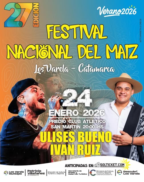 El 27° Festival Nacional del Maíz no solo renueva su espíritu festivo: este año escribe una página nueva en su historia al recibir a dos grandes artistas que despiertan emociones y convocan multitudes. Ulises Bueno e Iván Ruiz,
