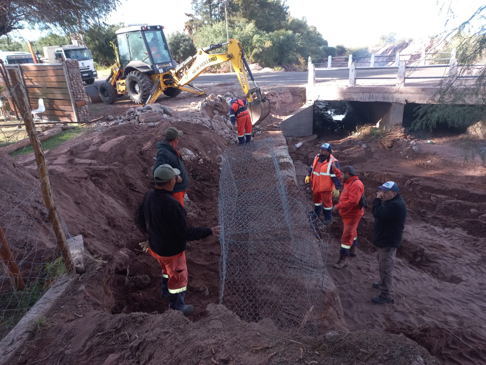 Catamarca, 23 de abril de 2026. Vialidad Nacional, con personal y equipos de la sobrestantía de zona, lleva a cabo la reconstrucción de defensas de una alcantarilla de Ruta Nacional 60, a la altura de Villa San Roque, Tinogasta (km 1.330).
